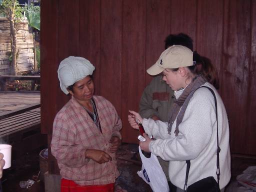 Ashley giving some spectacles to an old lady at the White Karen Village