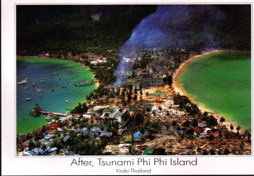 Postcard showing Phi Phi Island after the Tsunami